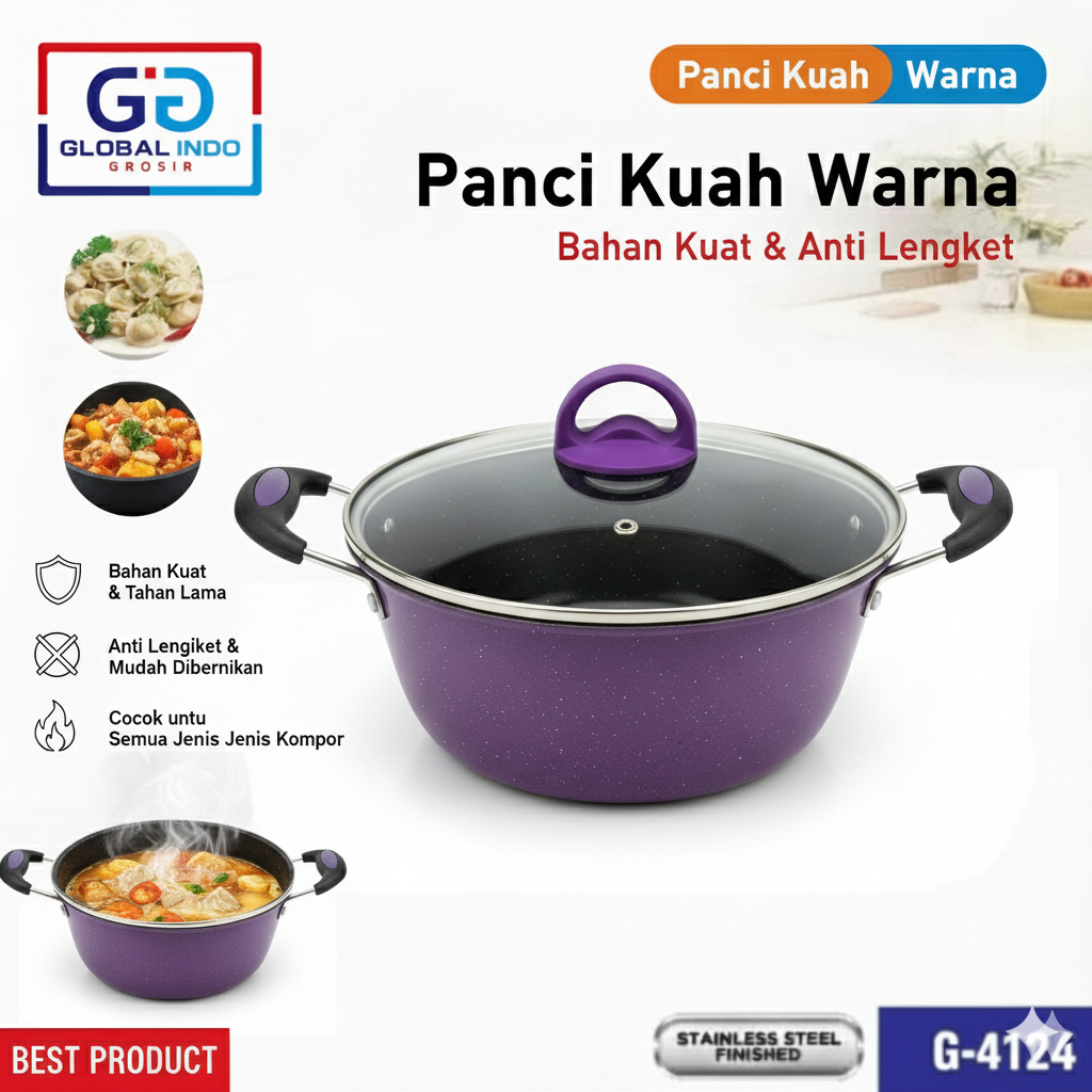 Panci Kuah Enamel Tutup Ka Panci Sup 24cm Soup Pot Warna Anti lengket Panci Rebus / Penggorengan