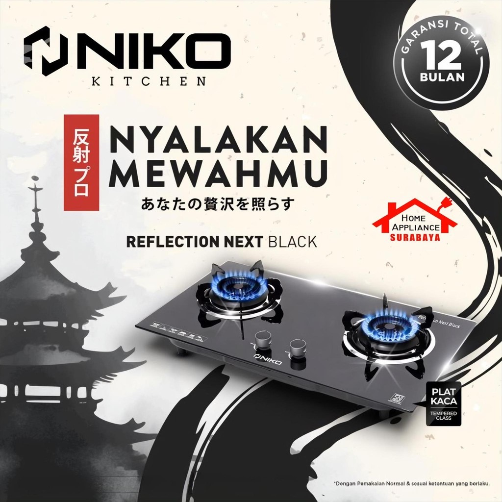 NIKO Reflection Next Black - Kompor Gas Tanam Kaca 2 Tungku