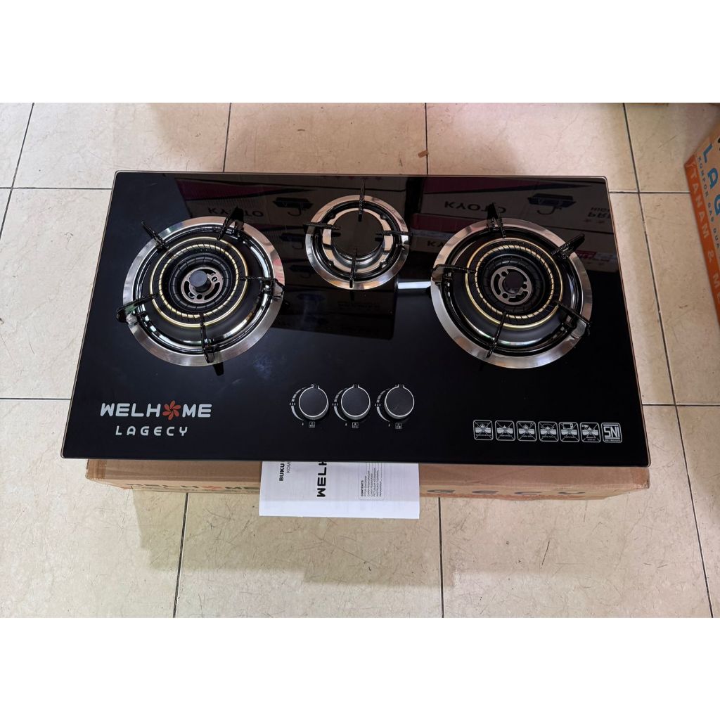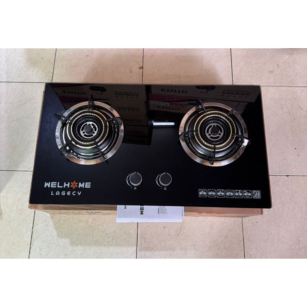 KOMPOR GAS TANAM 2 TUNGKU WELHOME LAGECY KACA TEMPERRED GLASS / BUILT-IN HOB WELLHOME KOMPOR TANAM PREMIUM GARANSI RESMI