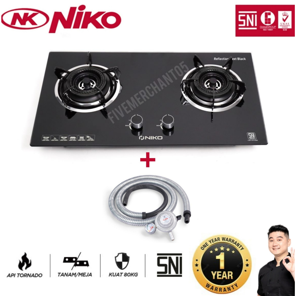 Kompor Tanam Niko REFLECTION NEXT BLACK 2 Tungku Built in Hob Gas Stove Api Tornado Tempered Glass Kaca