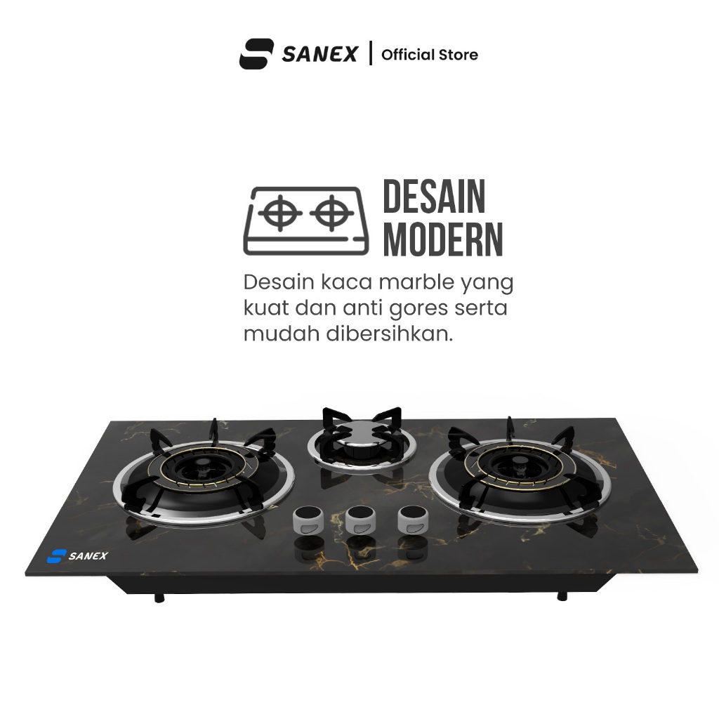 SANEX Kompor Gas Tanam 3 Tungku Marble Series SN-KT301