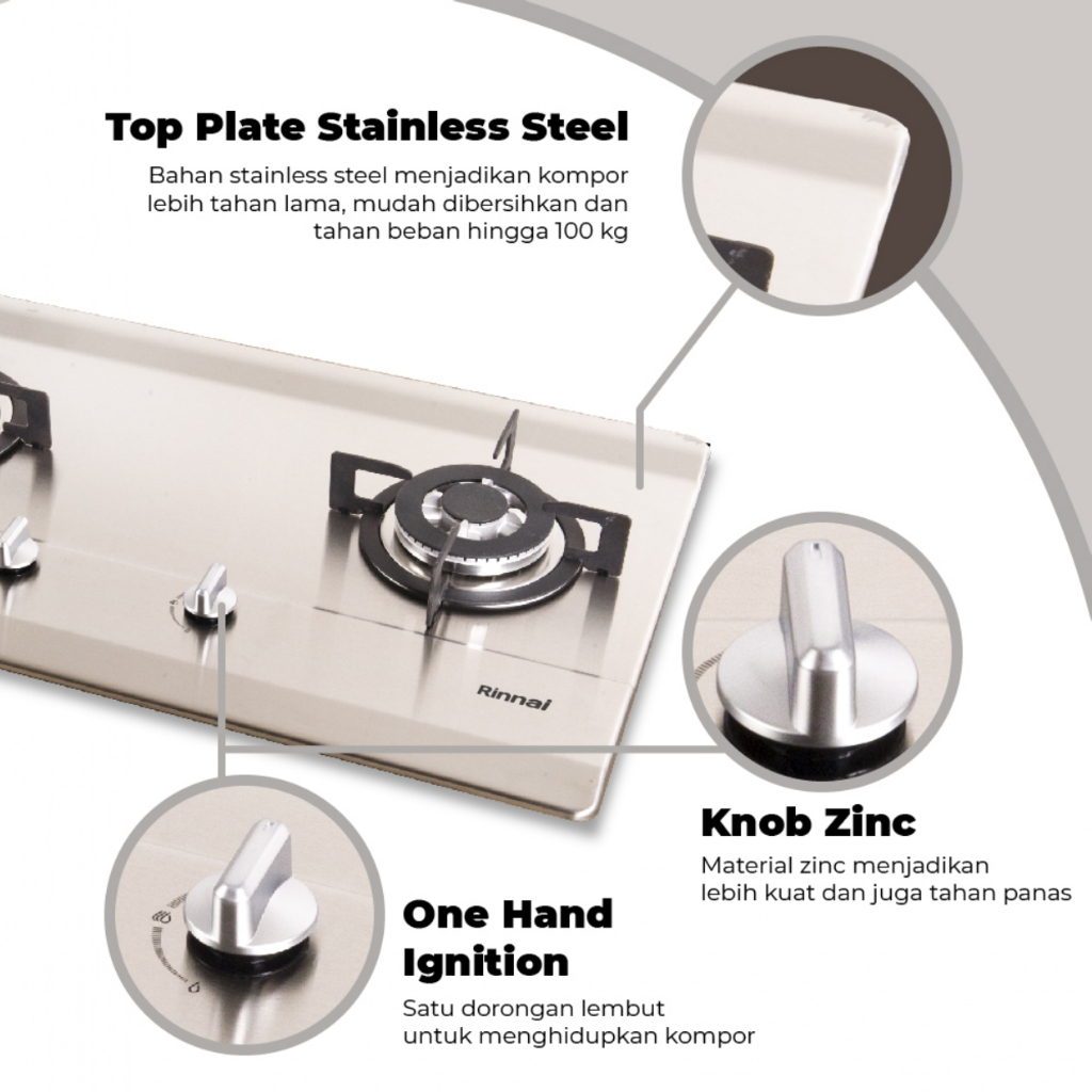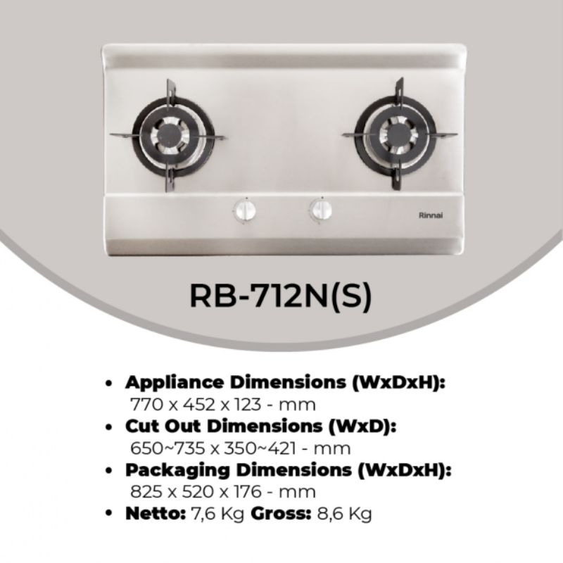 Kompor Tanam 2 Tungku Stainless Rinnai RB 712N (S) Garansi Resmi