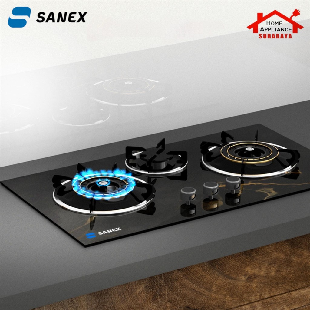 SANEX Kompor Kaca Gas Tanam 3 Tungku 2 IN 1 Motif Marble SN-KT301 / SN KT 301 K1 - K2 Anti Gores