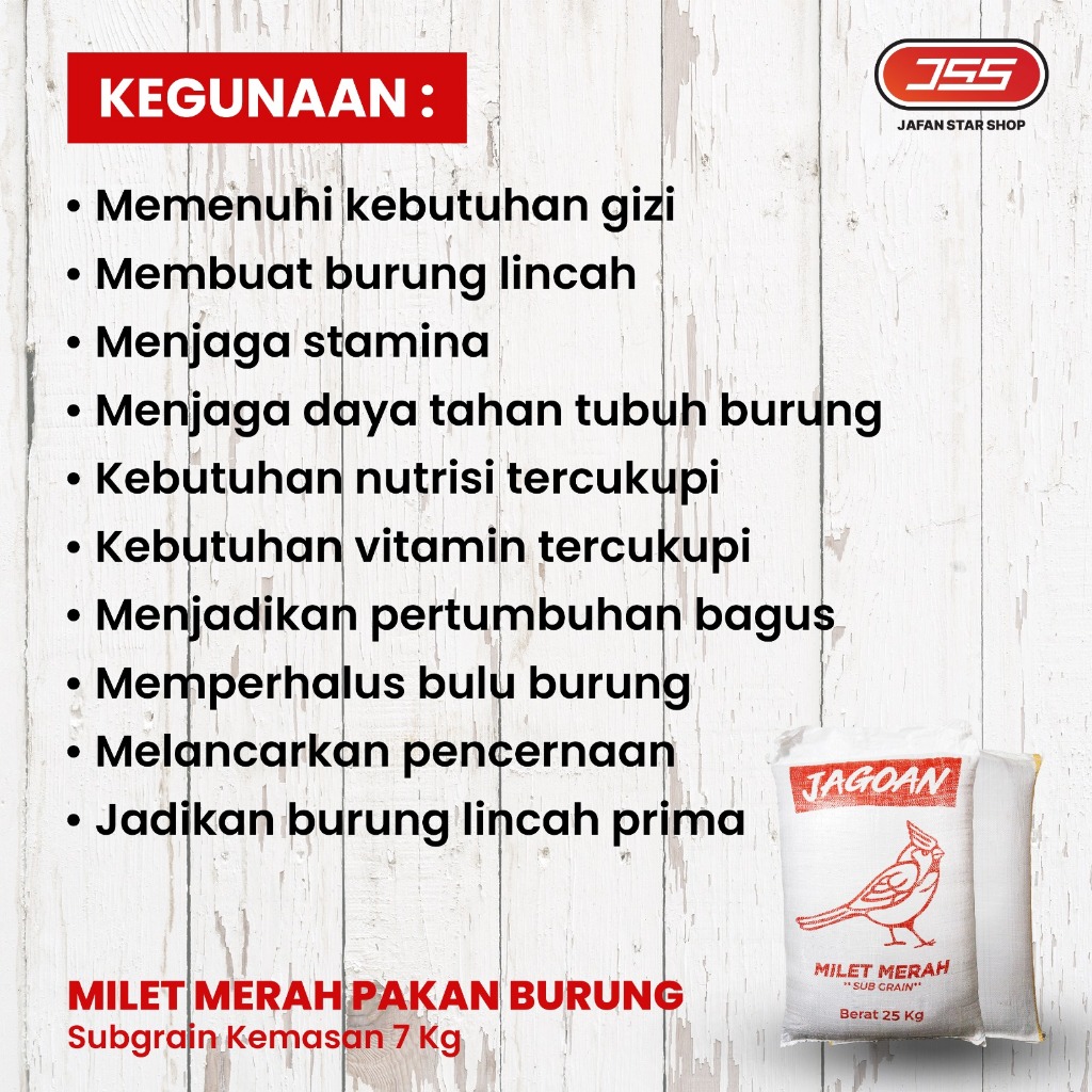 Milet Merah Bersih Pakan Burung dikemas 7 Kg