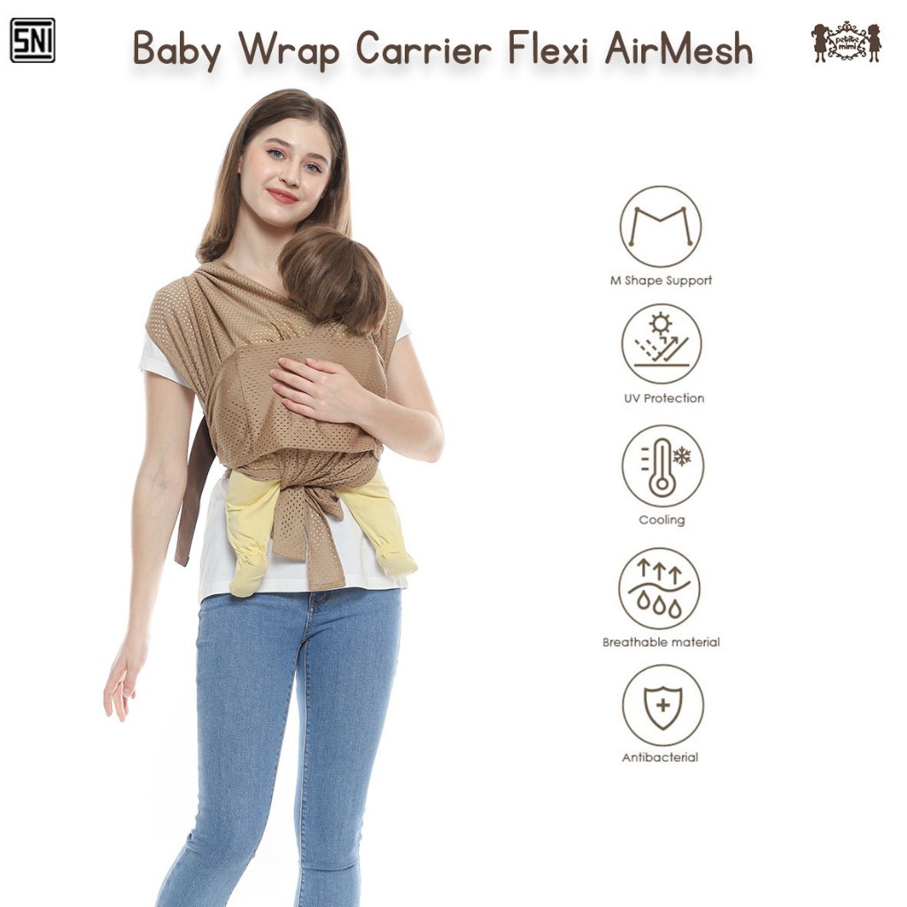Petite Mimi Gendongan Baby Wrap Carrier Flexi Airmesh - M-Shappe Support Adjustable Cool