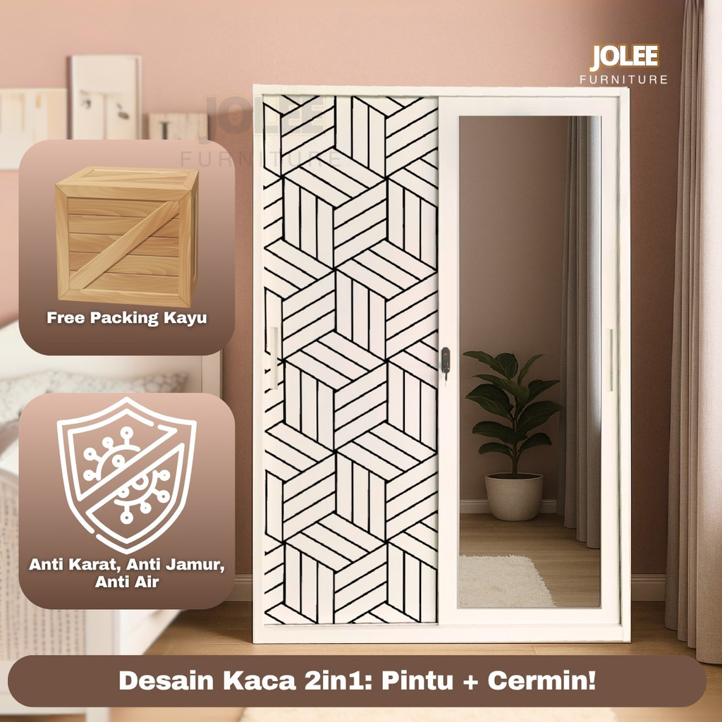 HI.quality-Lemari Pakaian Besi Lemari Pakaian Pintu ganda 85cm 2 pintu 1 Hanger Cermin Minimalis