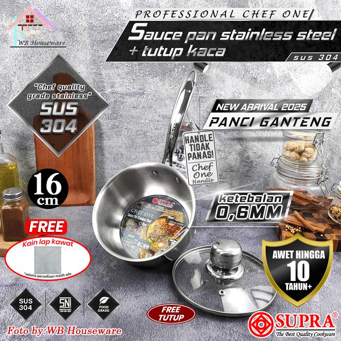 SUPRA PANCI STAINLESS STEEL SAUCE PAN 18 CM IMPACT PREMIUM COLLECTION / PANCI REBUS MASAK MIE GAGANG PANJANG - SAUCE PAN 18CM