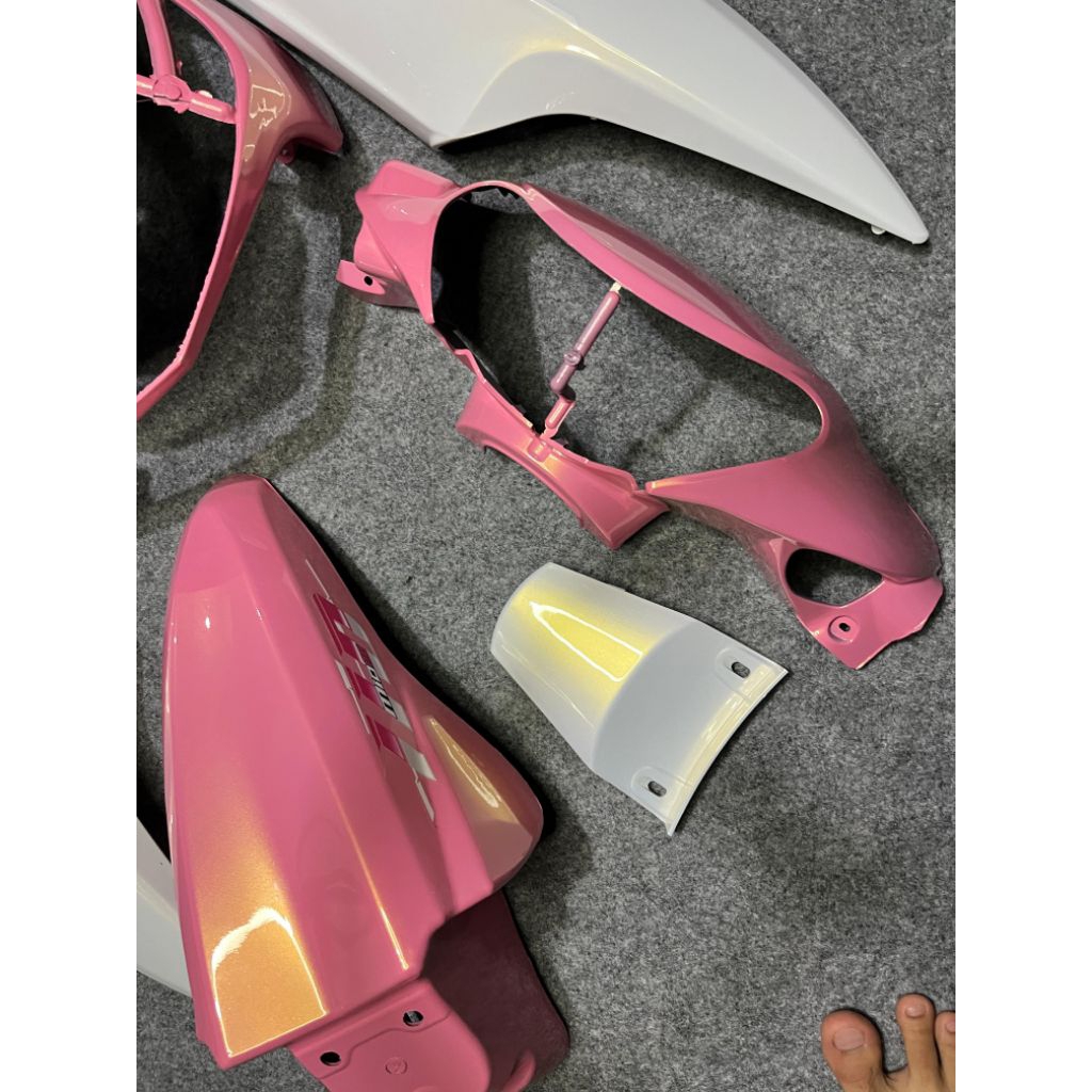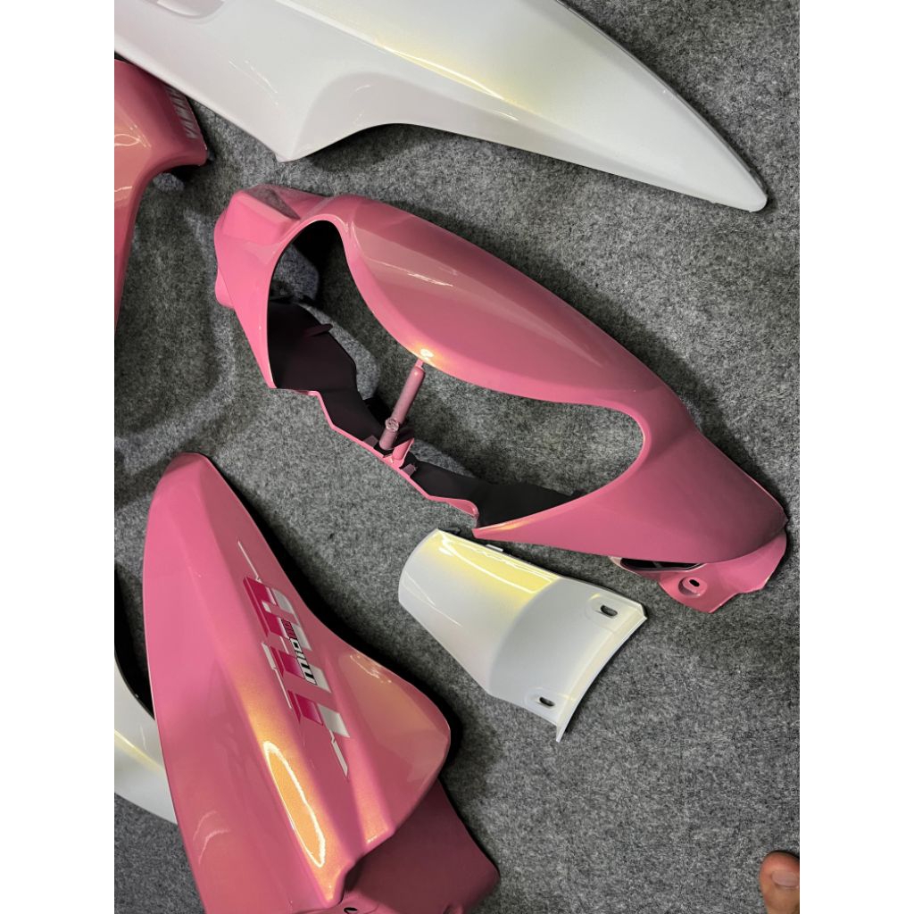 Cover full body halus Yamaha mio smile warna pink putih lembayung gold plus striping vietnam transparan