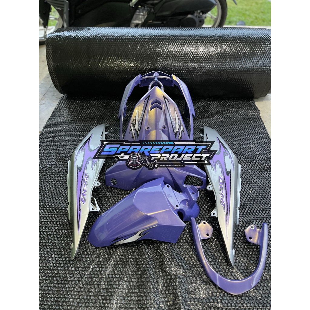 Cover full Body halus Honda Beat fi tahun 2013-2014 warna ungu x grey + Striping Vietnam style