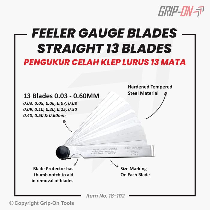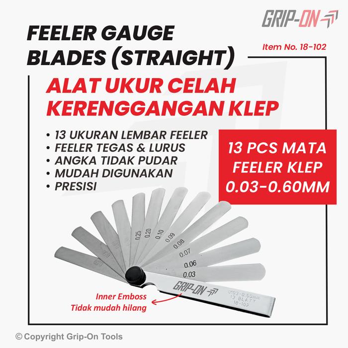 Grip-On Alat Ukur Celah Feeler Fuller Gauge 13 Blades 0.03 - 0.60 Mm