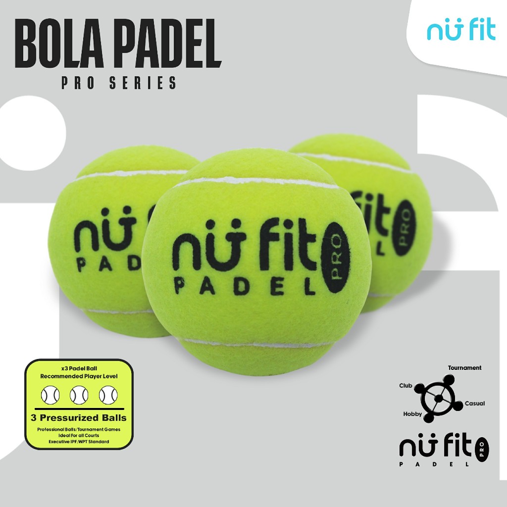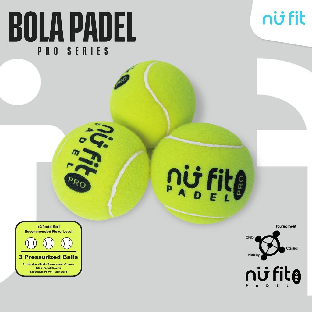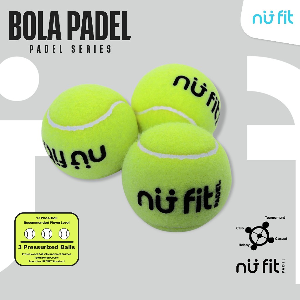 Nu Fit - Bola Padel - Padel Balls Isi 3 - Pressurized Padel Ball - Padel Ball Pro - Padel Ball