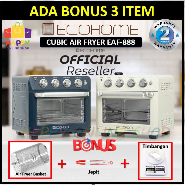 [Packing Kayu] ECOHOME Cubic Air Fryer Oven - Noble Series EAF-888 Low Watt 25 Liter