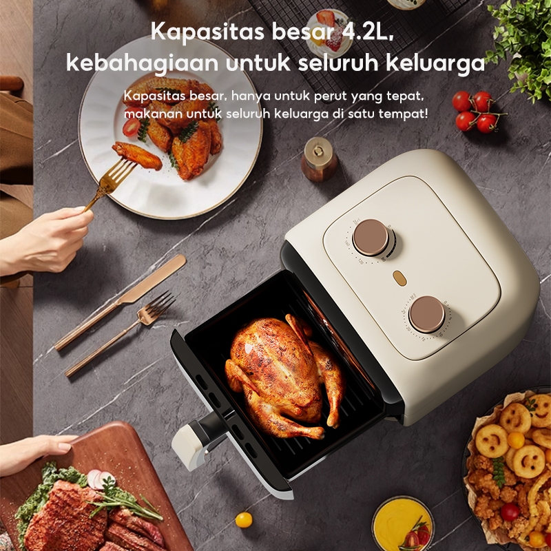 HAN RIVER Air Fryer 4.2L Multifungsi Wajan Anti Lengket Bebas Minyak Low Watt 800 Watt