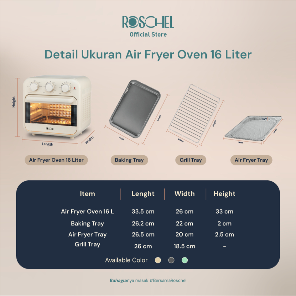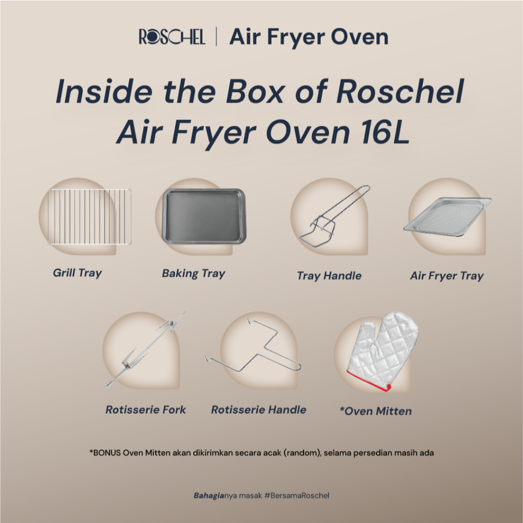 Roschel Air Fryer Oven With Rotisserie 16 Liter 5in1 With Dehydrator Penggoreng Tanpa Minyak Pemanggang Stay On Function