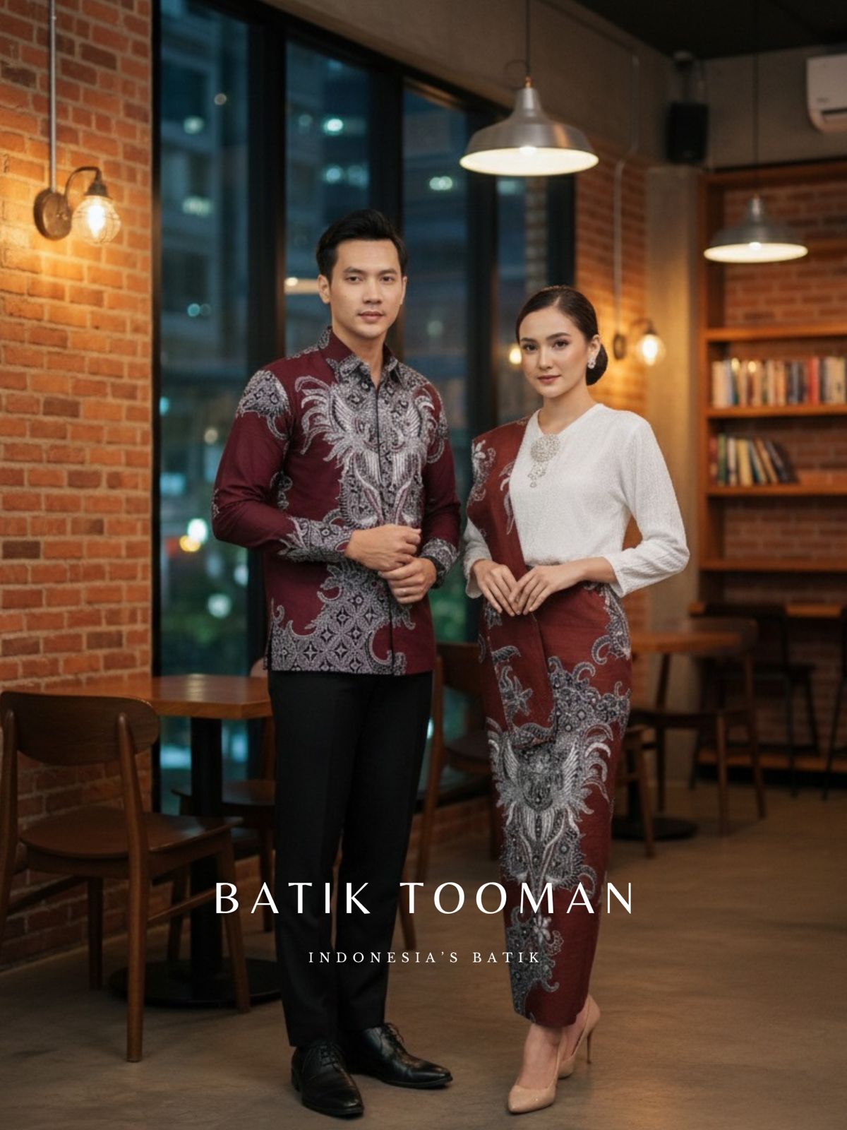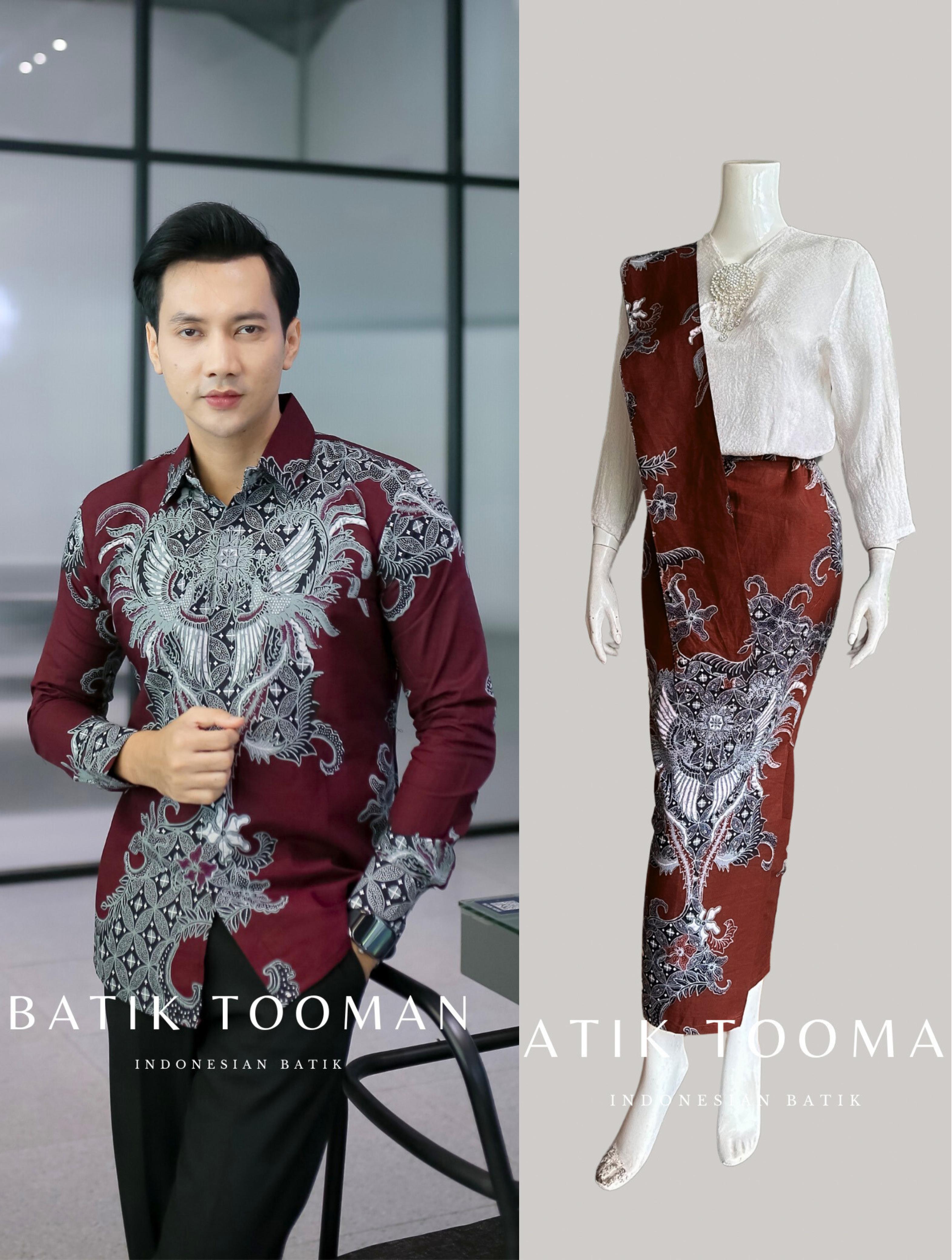TANJUNG Deep Maroon Burgundy Couple Sarimbit Rok 2 Lapis & Kemeja Batik Slimfit Warna Merah Marun Bahan Katun Halus Prim
