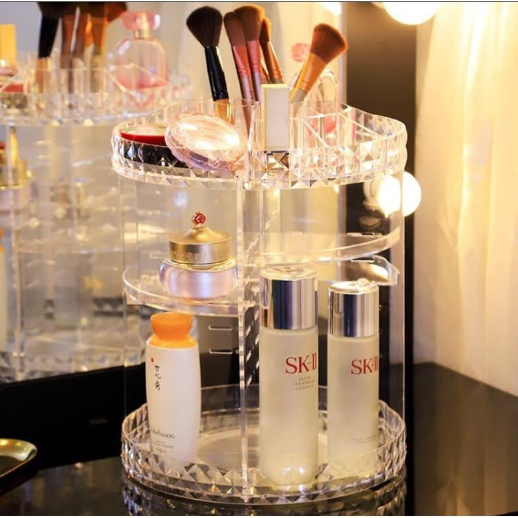 RAK KOSMETIK Promo() Rak Make Up Kosmetik Petak rylic Putar 360 Derajat Diamond Transparan Organizer Makeup Penyimpanan