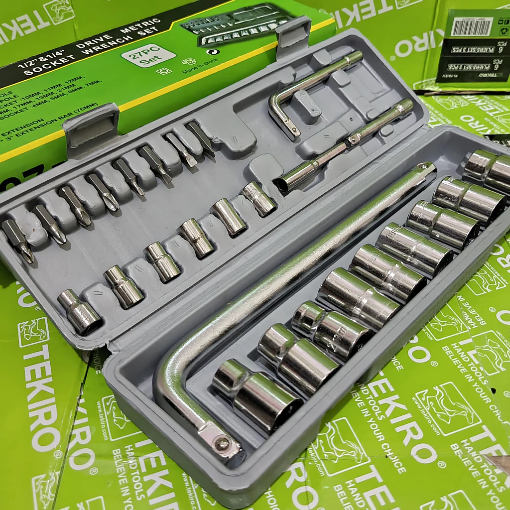 TEKIRO Kunci T 4pcs 8-10-12-14mm + Kunci Sok Shock 27pcs Victory + Kunci L Set 9pcs