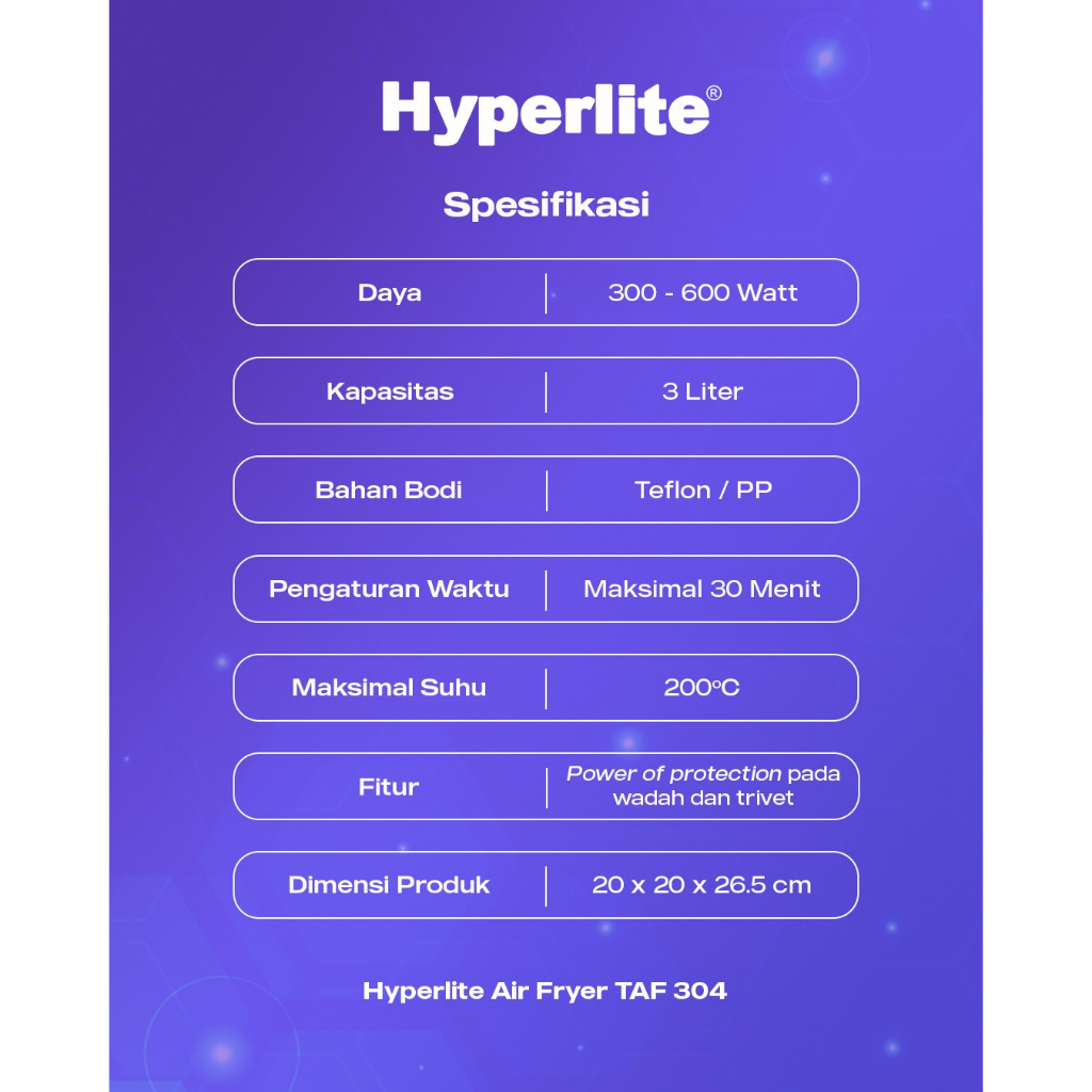 Arashi Hyperlite TAF304 Air Fryer Low Watt Digital Menggoreng Tanpa Minyak 3 Liter