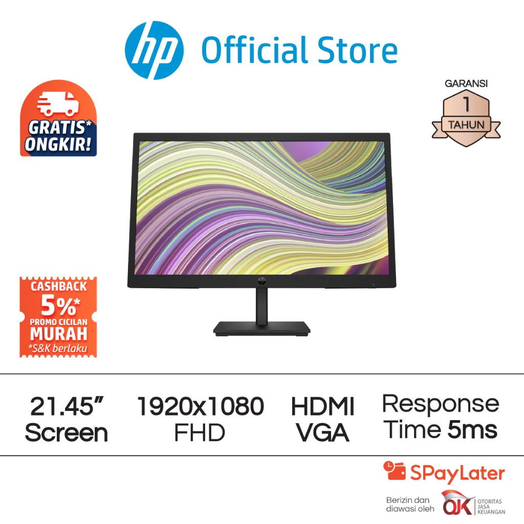 Monitor HP P22v G5 FHD Komputer 21.45 & 23.8 Inch 1920 x 1080 VA 75 Hz 5 ms HDMI Display Port / P24v G5 / Garansi 1 Tahun Official