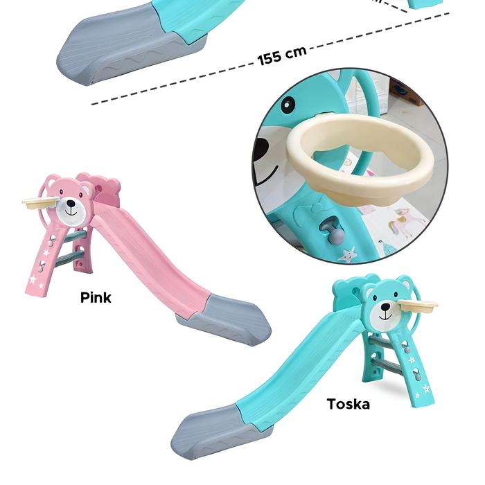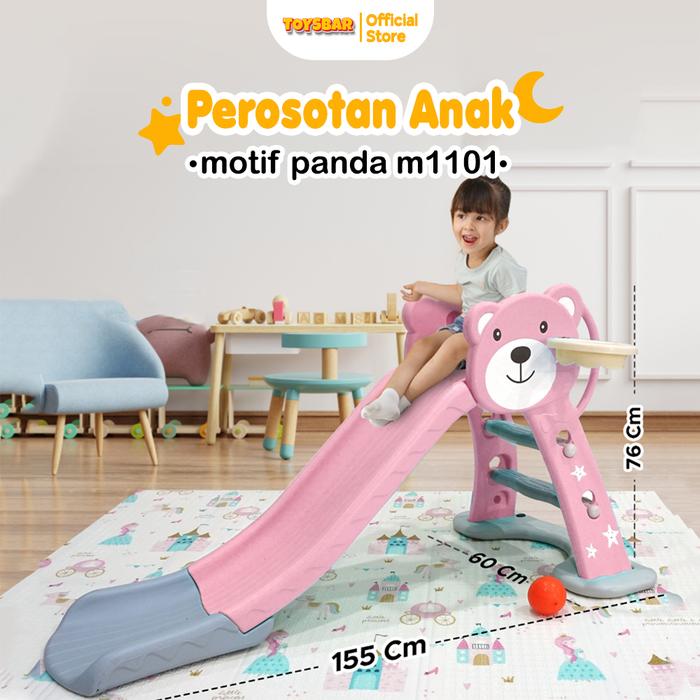 Mainan Perosotan Panda M1101 – Bahan Hdpe, Pijakan Anti Slip, Ada Ring Basket Anak - Pink