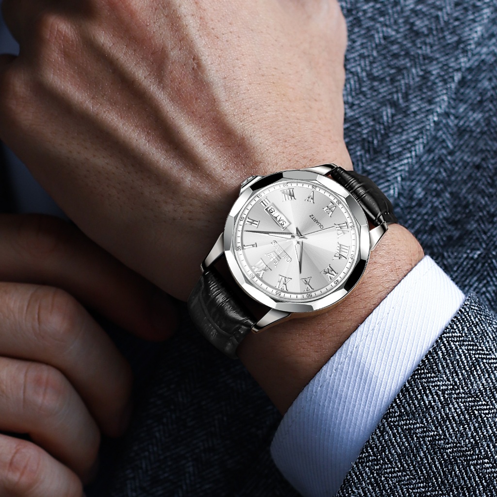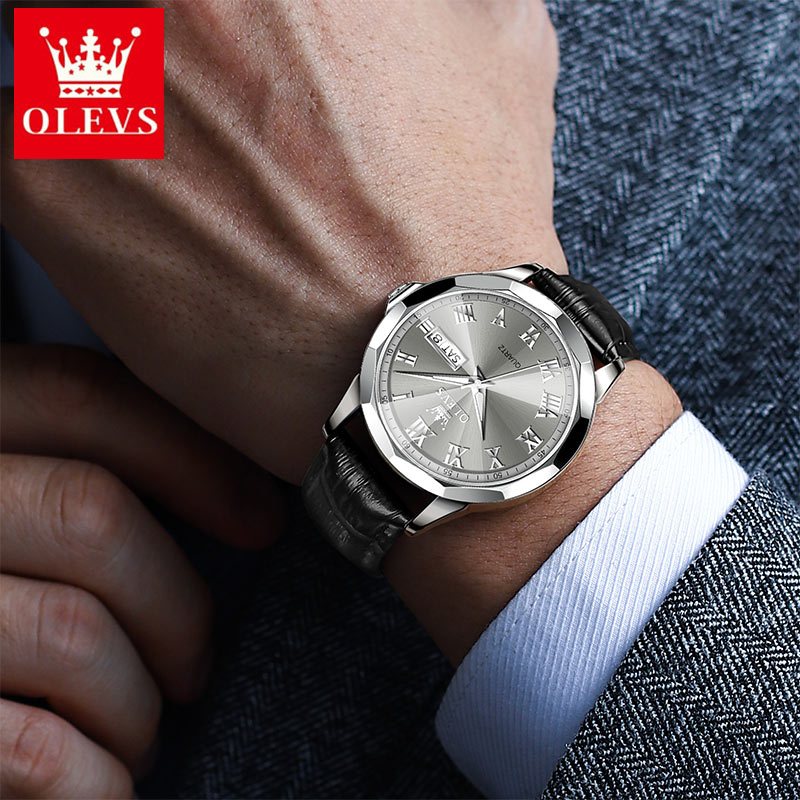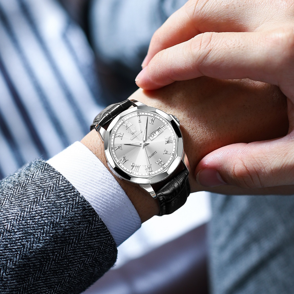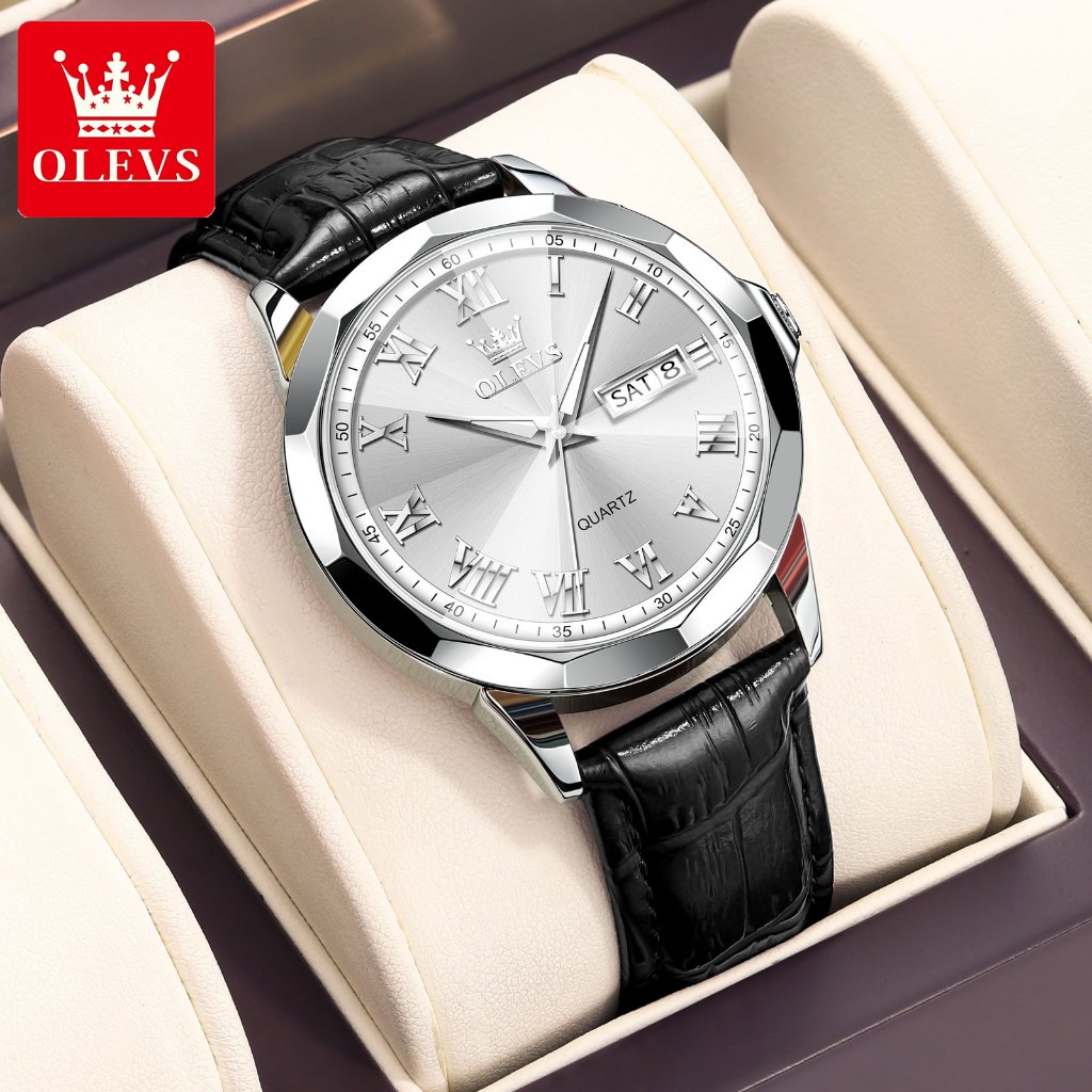 OLEVS Jam Tangan Pria Casual Anti Air Original Analog Keren Tahan Watch Men Kulit Terbaru Mewah 9990