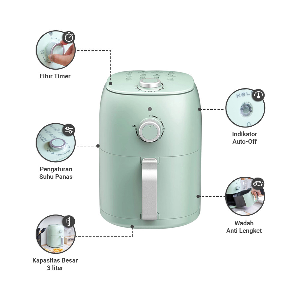Informa Kels 3 ltr Landen Air Fryer - Hijau Alat Goreng Pembuat Makanan Elektronik Dapur Sehat Oven Udara Penggorengan U