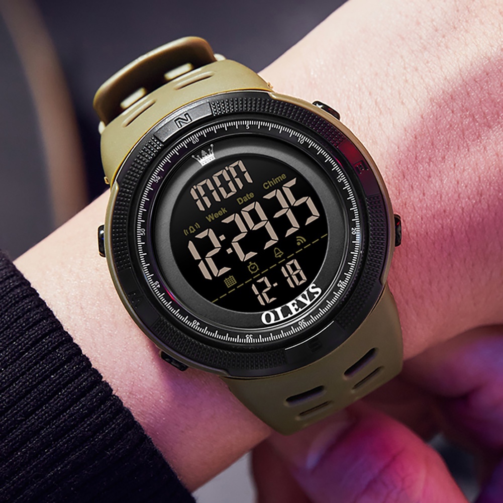OLEVS Jam Tangan Digital Pria Original Anti Air 50 Meter Multifungsi LED Alarm Men Watch Hitam