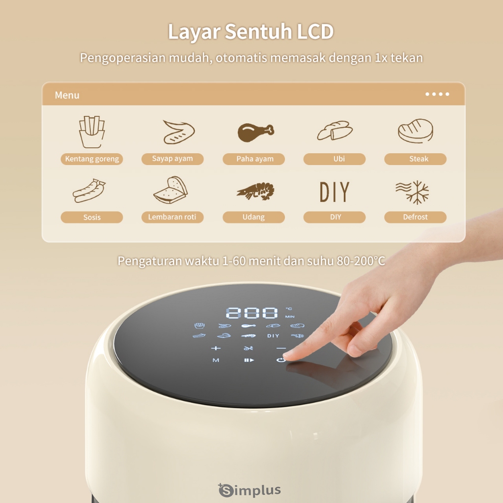 Simplus Air Fryer Low Watt 650W 3,5L Digital Touch Screen Panoramic Glass 360 View