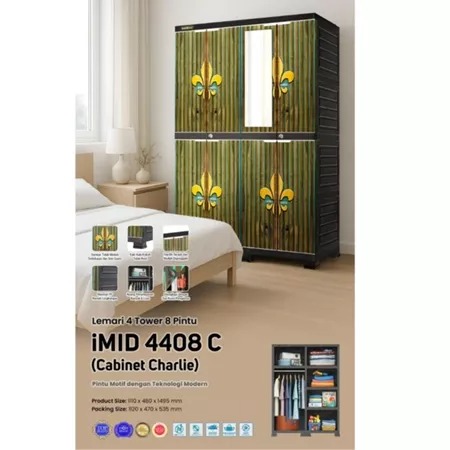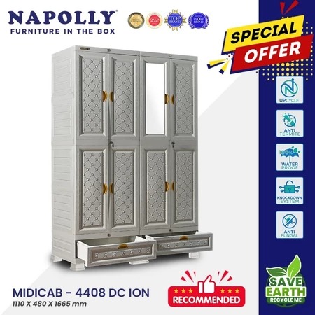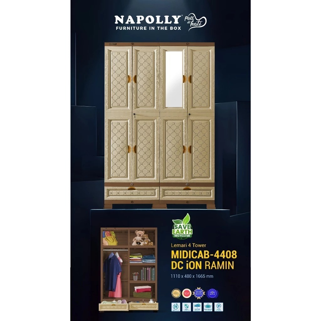LEMARI - LEMARI PAKAIAN - RAK SUSUN - LEMARI PAKAIAN NAPOLLY 4 PINTU MEDIUM CABINET GANTUNG CERMIN JUMBO