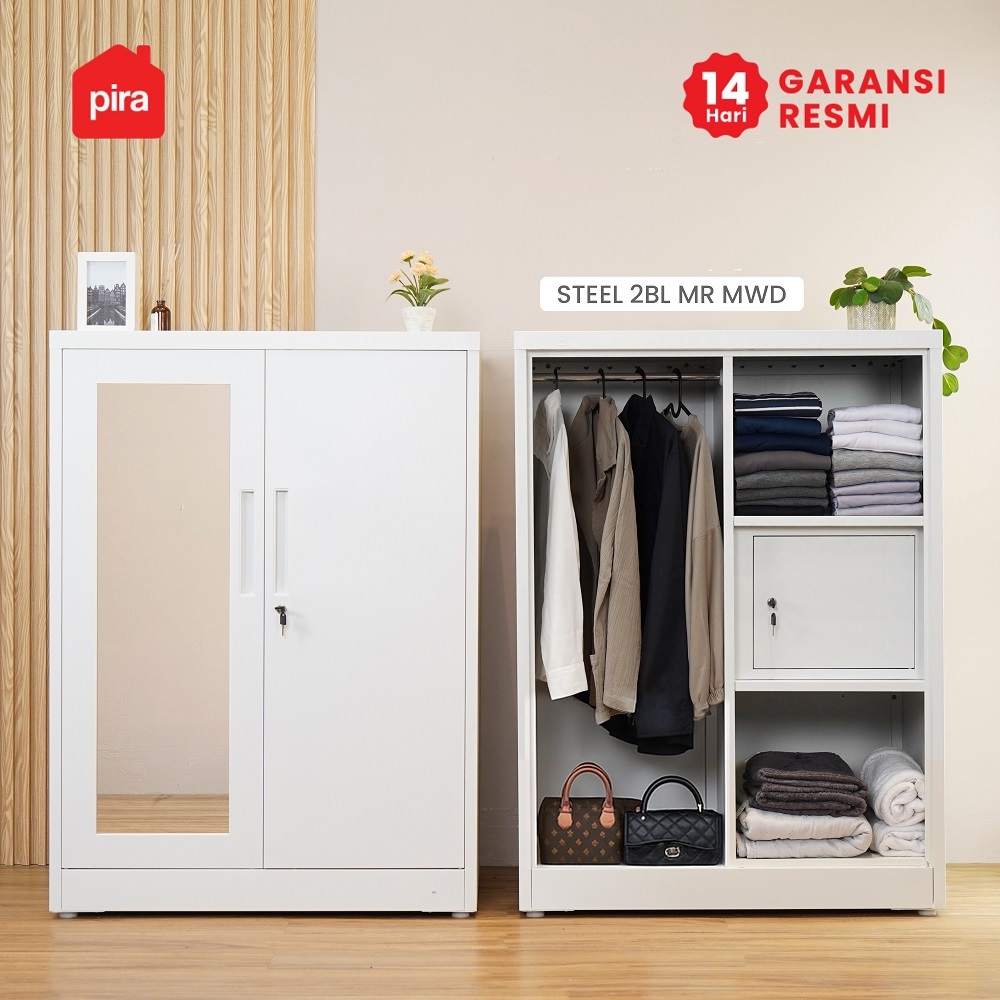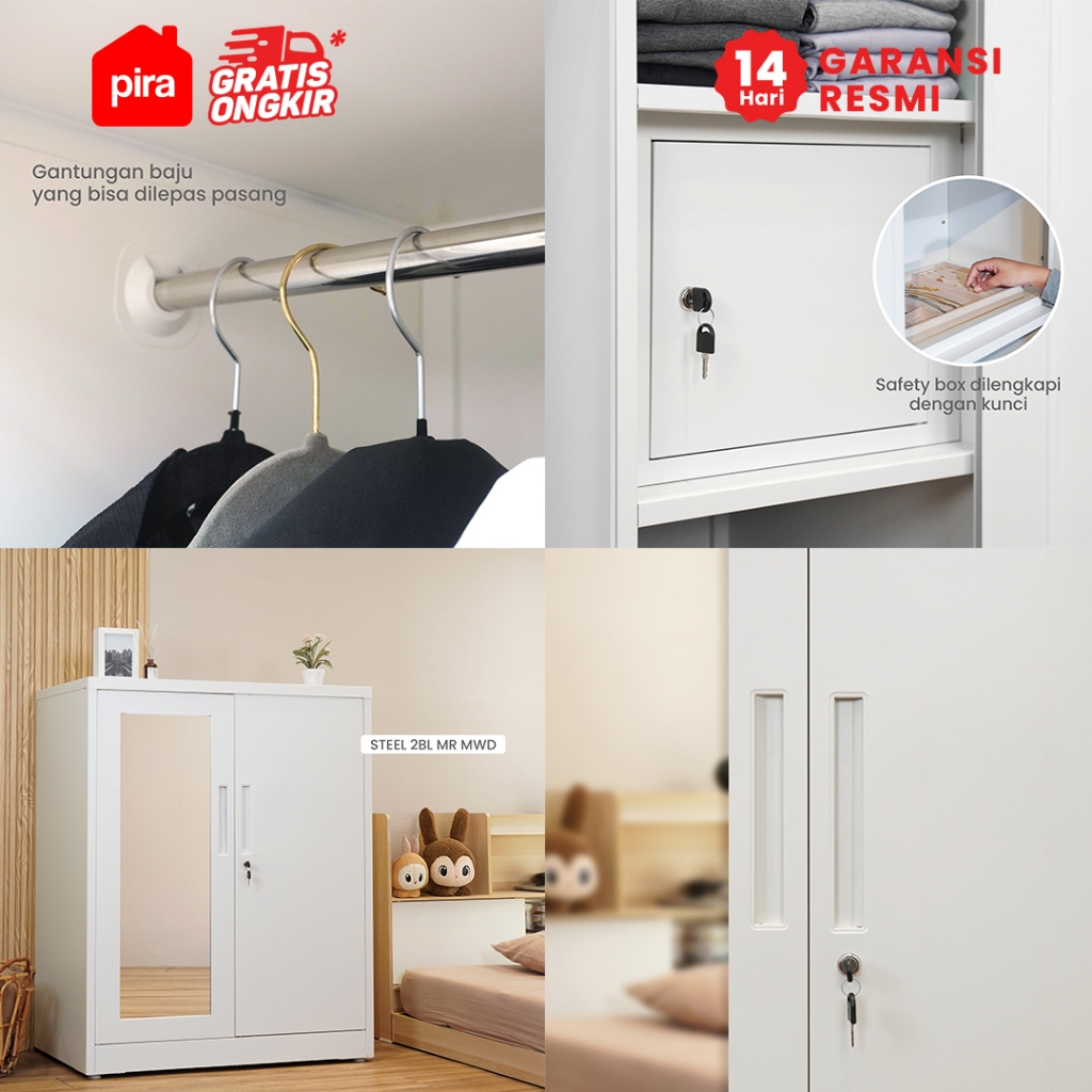 PIRA - STEEL 2BL MR MWD Lemari Pakaian Besi 2 Pintu dengan Cermin / Lemari Pakaian Anak