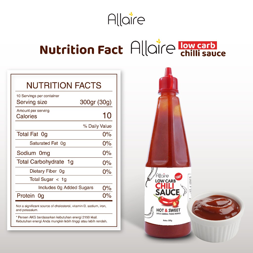 Allaire Chilli Sauce Sweet And Spicy - 300 g | Saus Tanpa Gula Pedas Manis | Chilli Sauce Sugar Free | Saus Rendah karbo