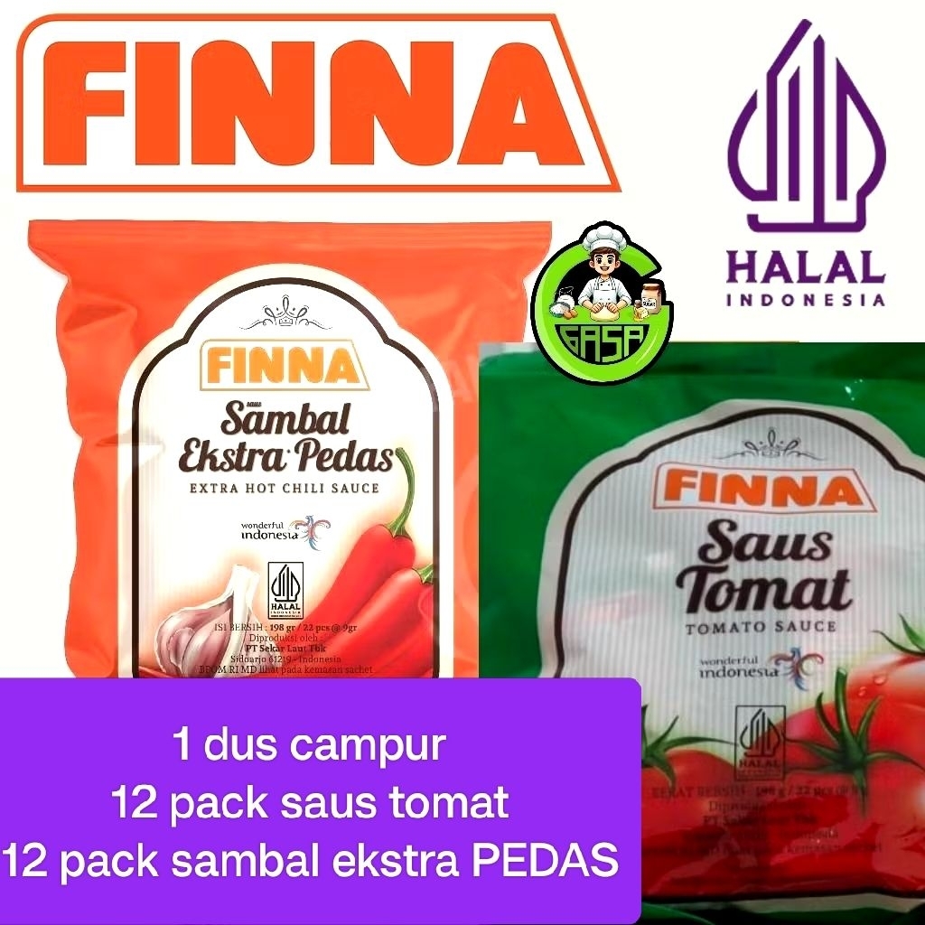 1 dus (528 sachet) FINNA SAUS SAMBAL EKSTRA PEDAS - SAUS TOMAT / 24 x 22sachet (9gr) / SAOS SAMBEL FINA /HOT chilli sauc