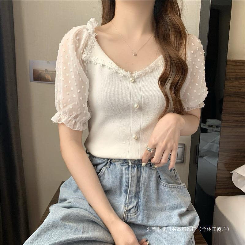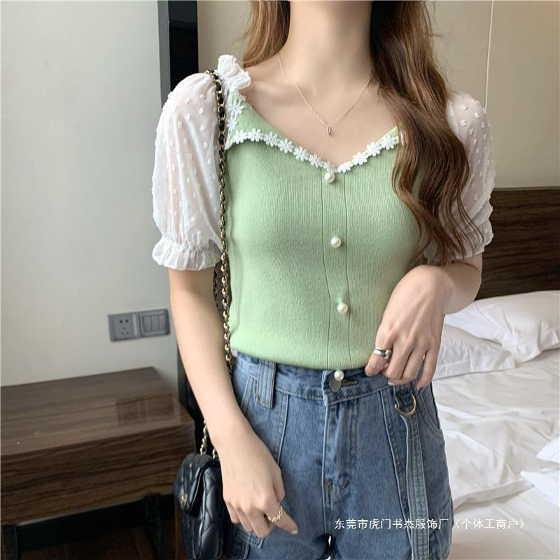 Atasan Rajut Wanita Model Renda (A314) / Atasan Rajut Lengan Pendek Kancing Variasi