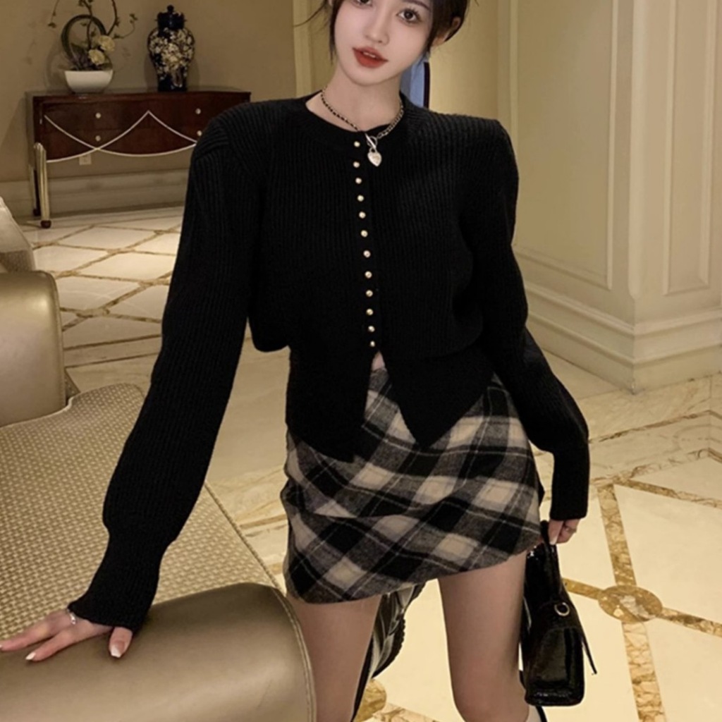 Atasan Rajut Oneck Lengan Panjang Wanita Kancing Mati Korean Style Kaos Top Baju Knit Wanita Basic Long Sleeve