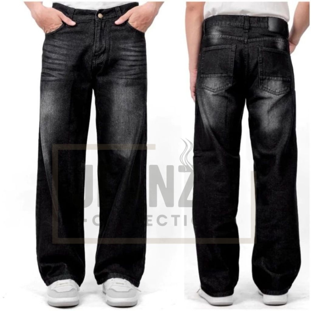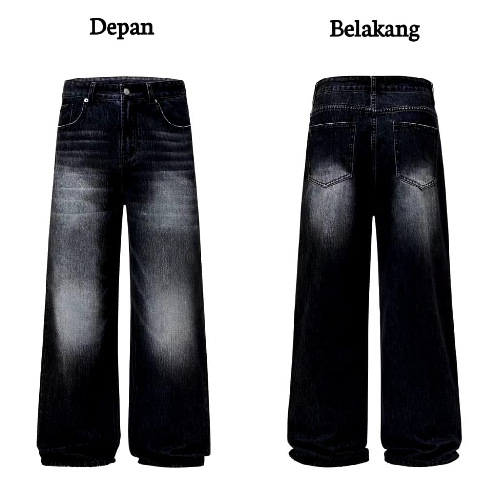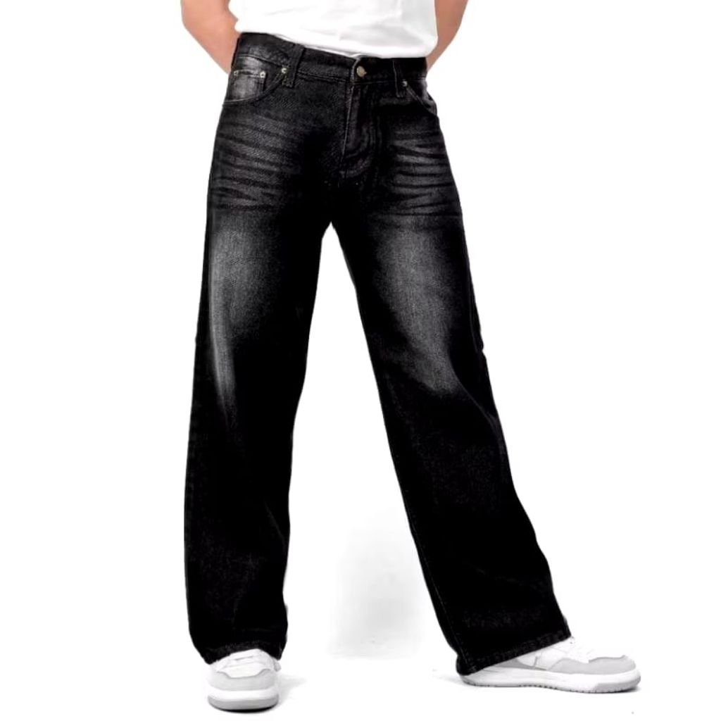 Celana Jeans Whisker Lebar Gombrong Skena Wide Leg Whisker Pria Korean Style Keren Dan Kece