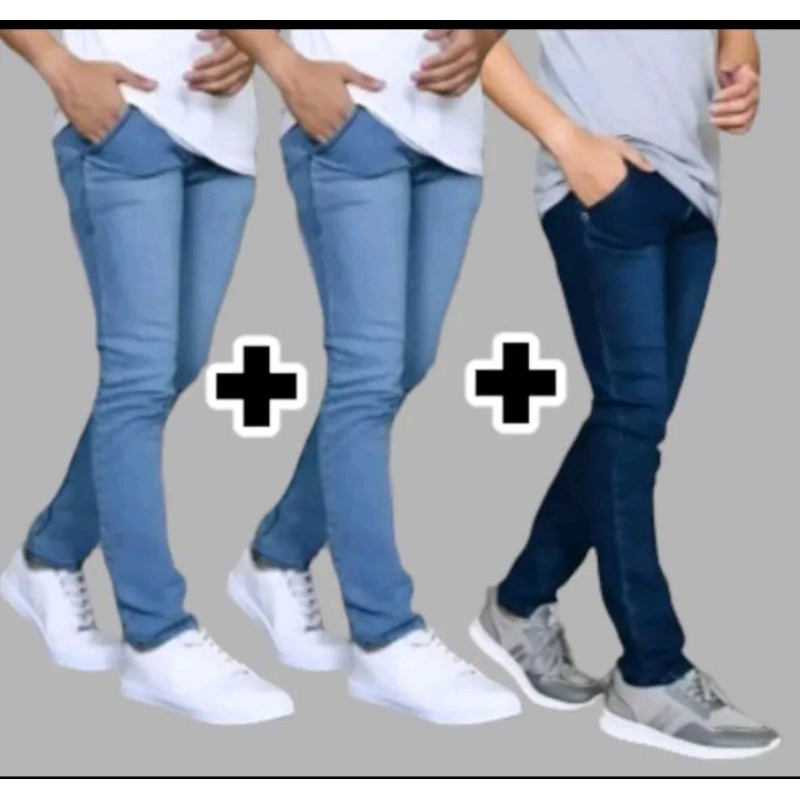 HEMAT ONGKIR+PAKET ISI TIGA CELANA PANJANG JEANS PRIA LELAKI DEWASA+CELANA COWOK PENSIL SLIMPIT SKINNY BAHAN GARET STEAC