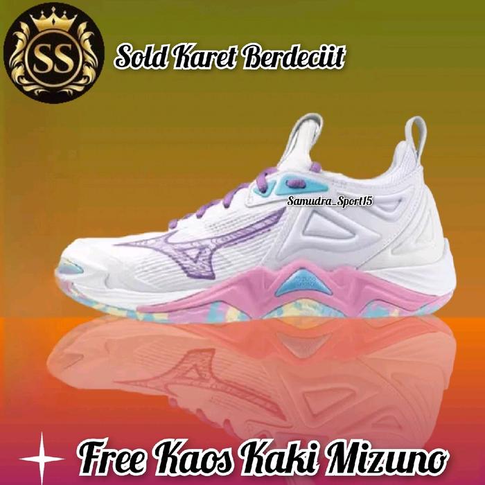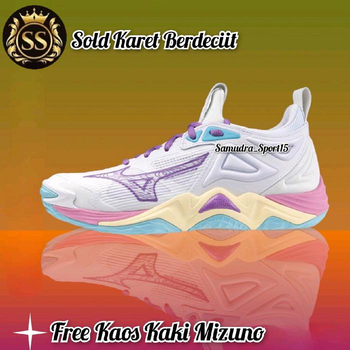 SEPATU VOLLY MIZUNO MOMENTUM 3 LOW WOMAN GRADE ORI SEPATU BADMINTON IMPOR MURAH NYAMAN WANITA OLAHRAGA - WHITE PURPLE MOM3 LOW, 37
