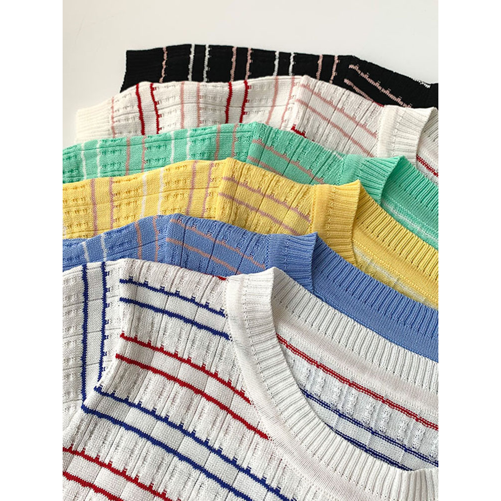 [ Obral Cuci Gudang ]The Monseur Gallery Kaos Rajut Lengan Pendek Wanita Striped T-shirt Korean Style