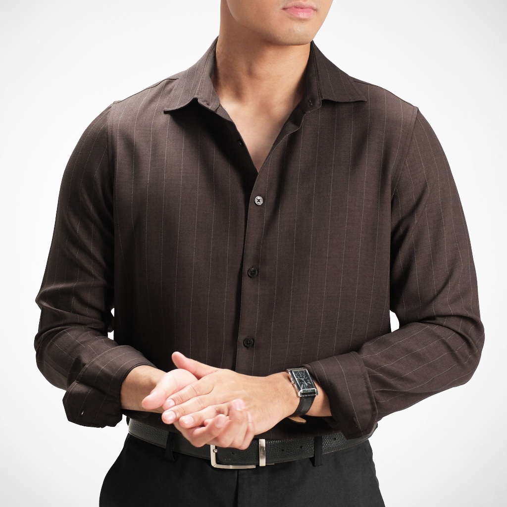 CUTOFF Kingston Pinstripe Shirt Kemeja Salur Garis Formal Pria Lengan Panjang