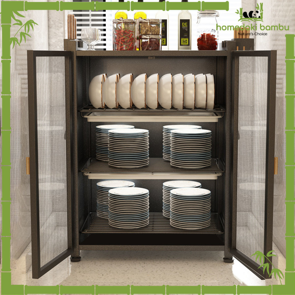 rak piring minimalis modern wastafel kaca keramik plastik tertutup serbaguna alumunium kaca stainless 3/2 pintu Homedoki