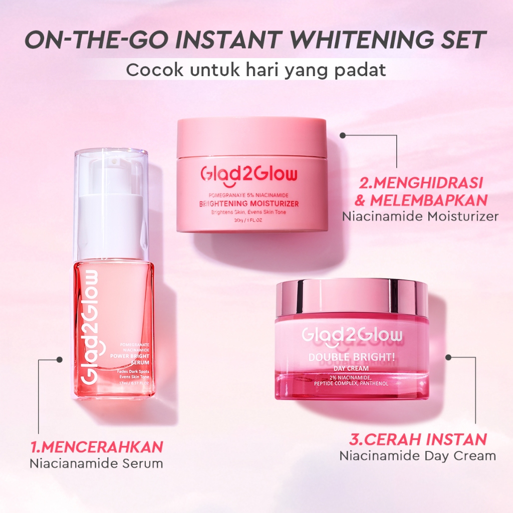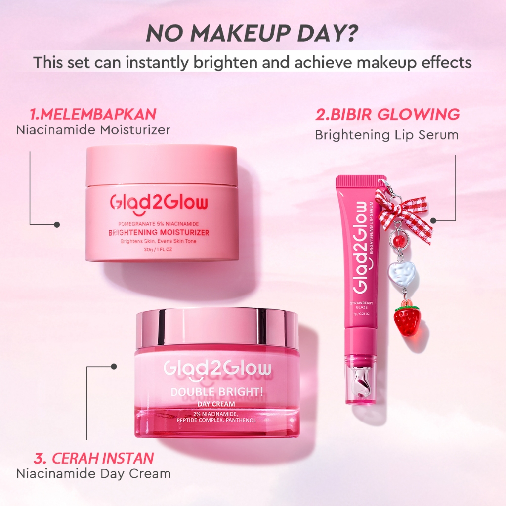 GLAD2GLOW DOUBLE BRIGHT DAY CREAM 4PCS TONE UP 4IN1 BUNDLE CERAH NIACINAMIDE MOISTURIZER BRIGHTENING WAJAH TERLARIS