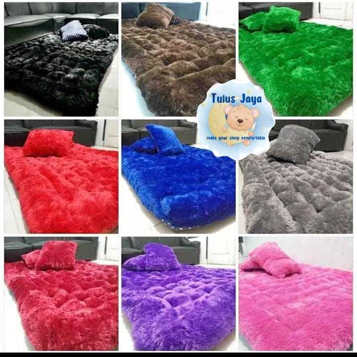 KASUR LANTAI Kasur Lantai Bulu Rasfur Tebal Bonus 2 Bantal