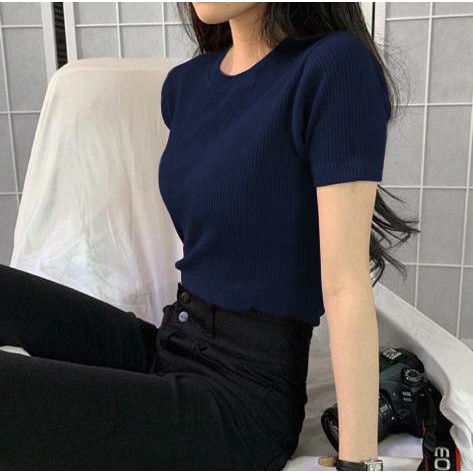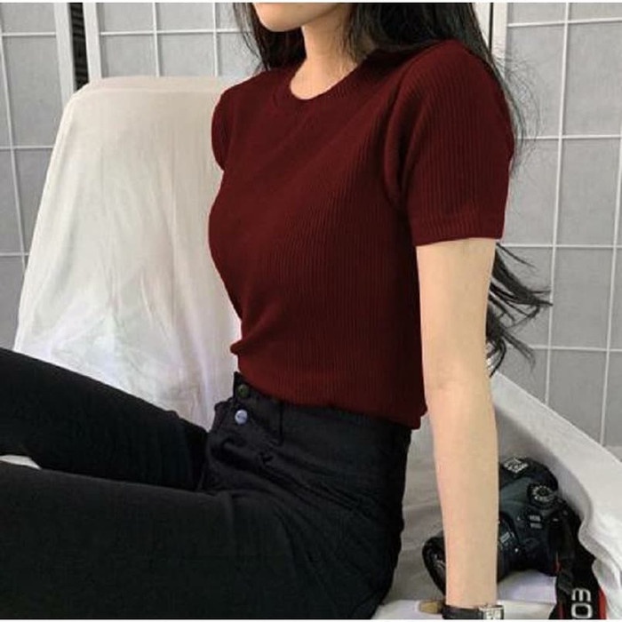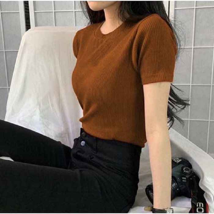 BAJU ATASAN GISELLA RAJUT WANITA LENGAN PENDEK/BAJU RAJUT SALUR/BLOUSE RAJUT LENGAN PENDEK