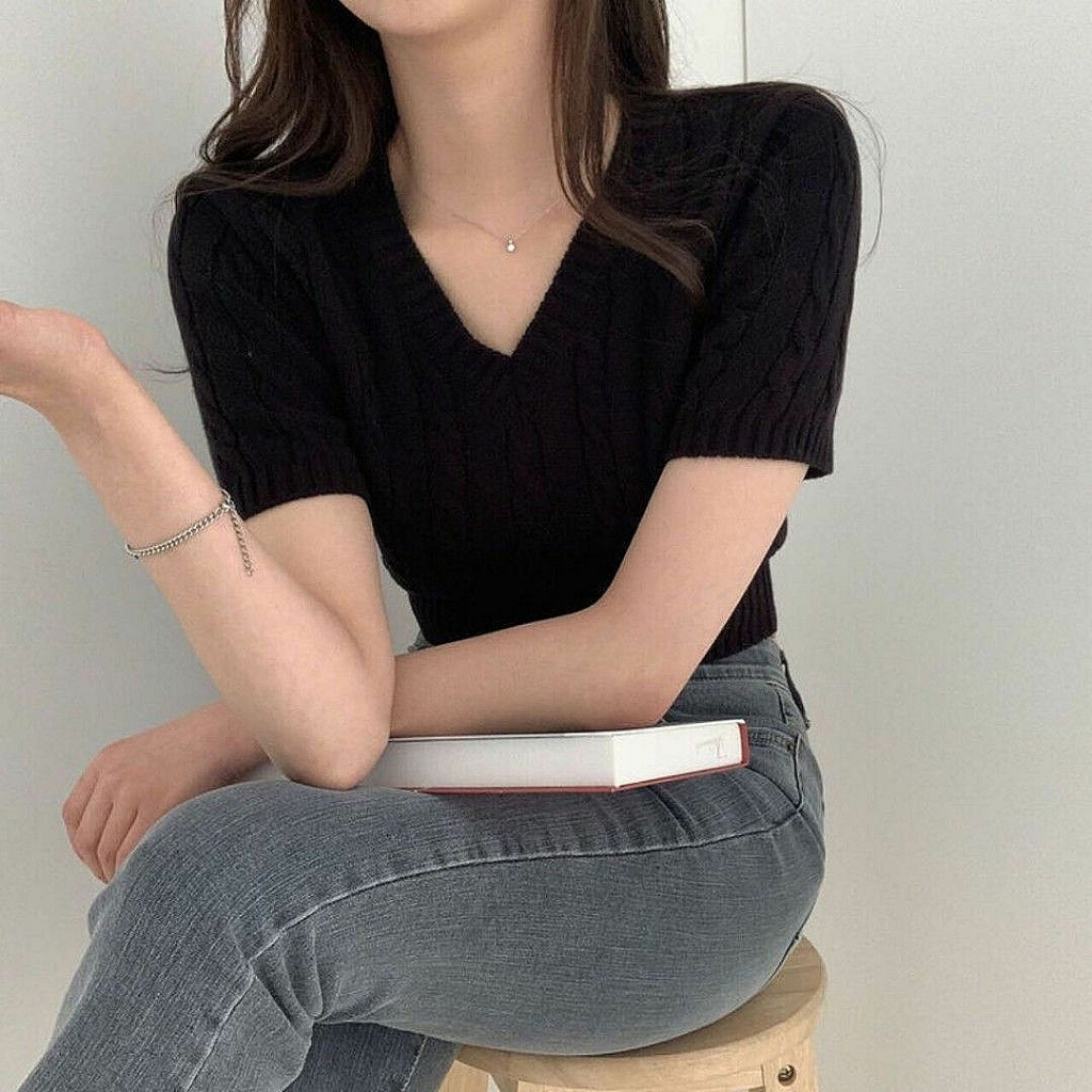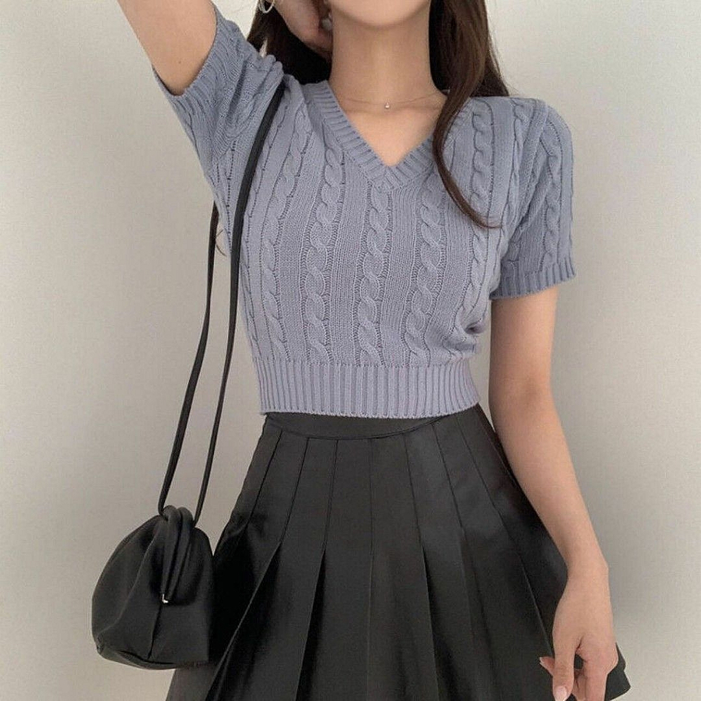 Atasan Rajut Knit Cable Crop Top Tebal Alexasteven