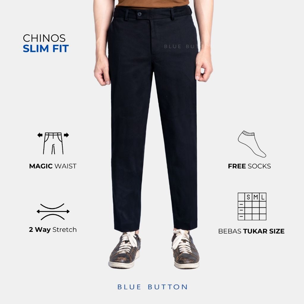 BLUEBUTTON Celana Chino Ankle Pants Slim Fit Black