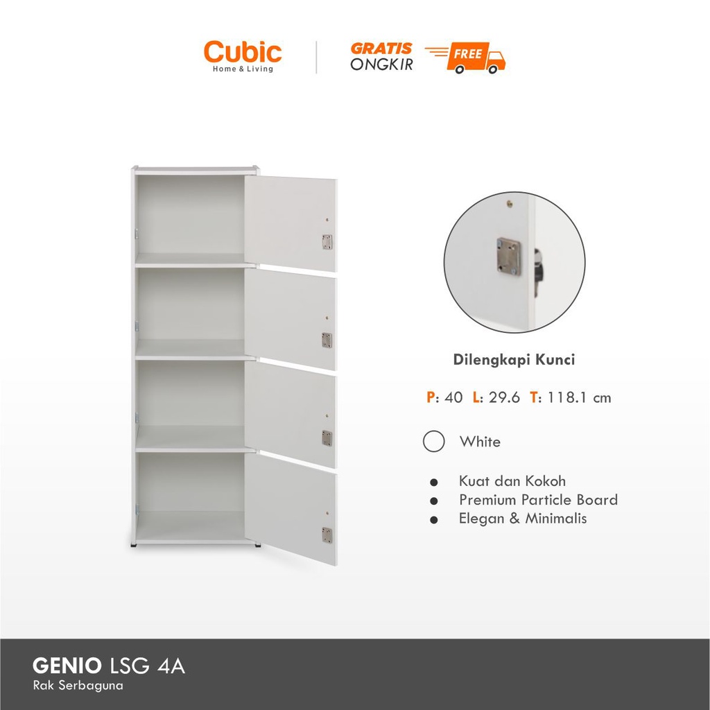 Cubic Rak Pintu Susun 4 Minimalis / Lemari Buku Serbaguna / GENIO LSG 4A