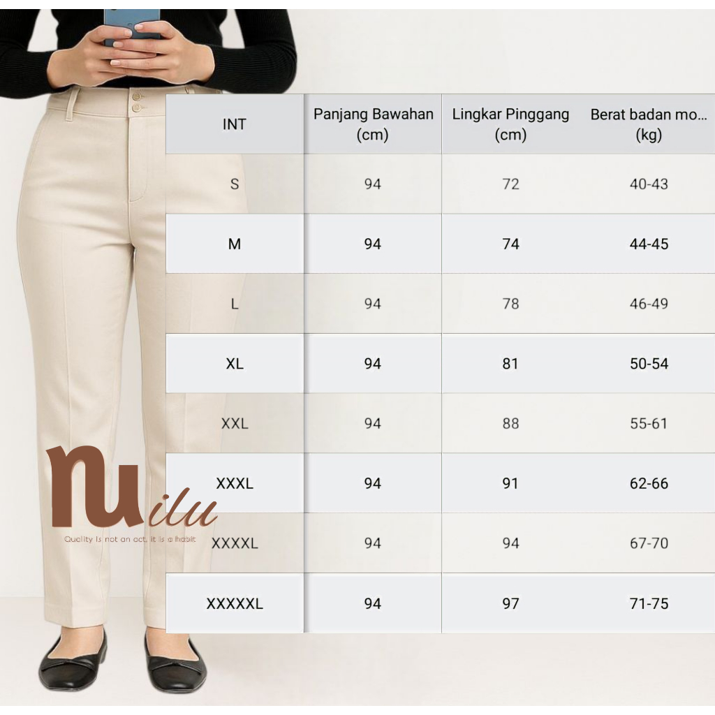 NILU - Celana Kerja Kantor Wanita Formal Celana Bahan Pinggang Resleting Kancing