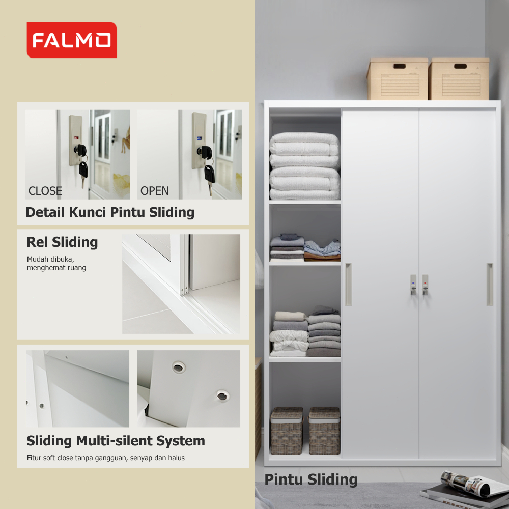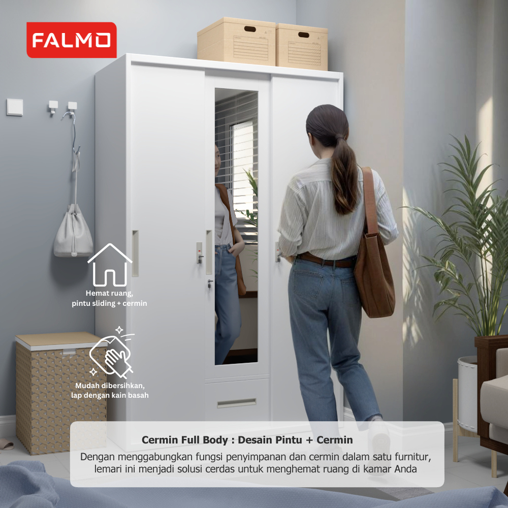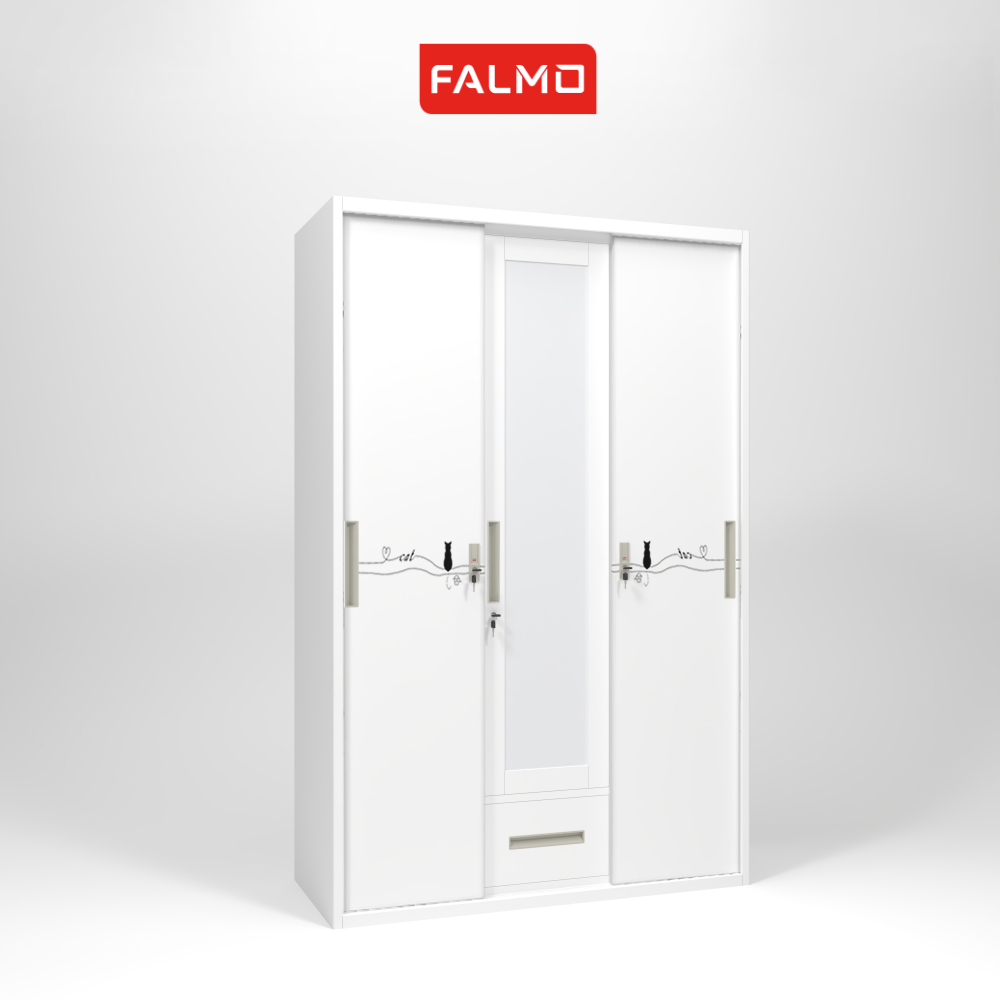 FALMO Lemari Pakaian 3 Pintu/ 120cm 1 gantungan 1 L 1 Brankas Pintu Sliding Full Motif
