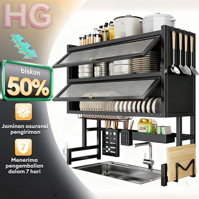 rak piring minimalis modern wastafel kaca keramik plastik tertutup serbaguna alumunium kaca stainless 3/2 pintu