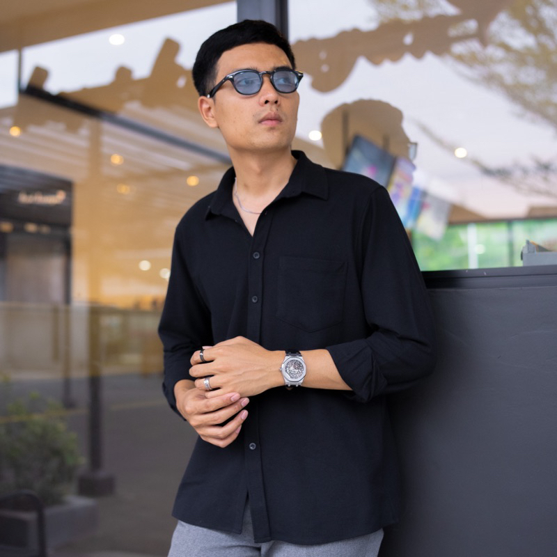 GOODETHICS - Kemeja Pria Basic Polos Lengan Panjang Hitam